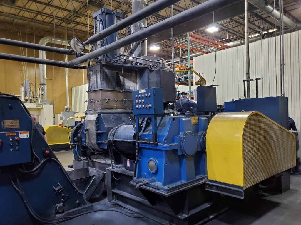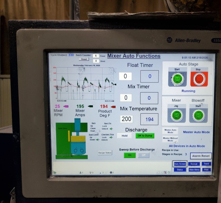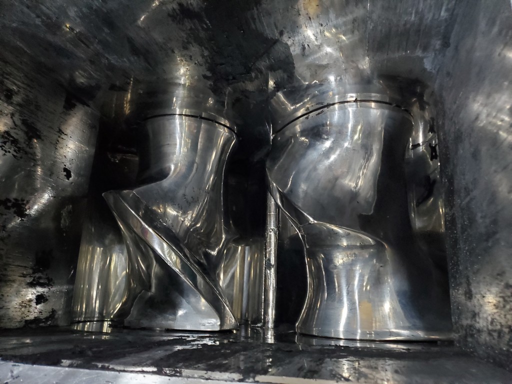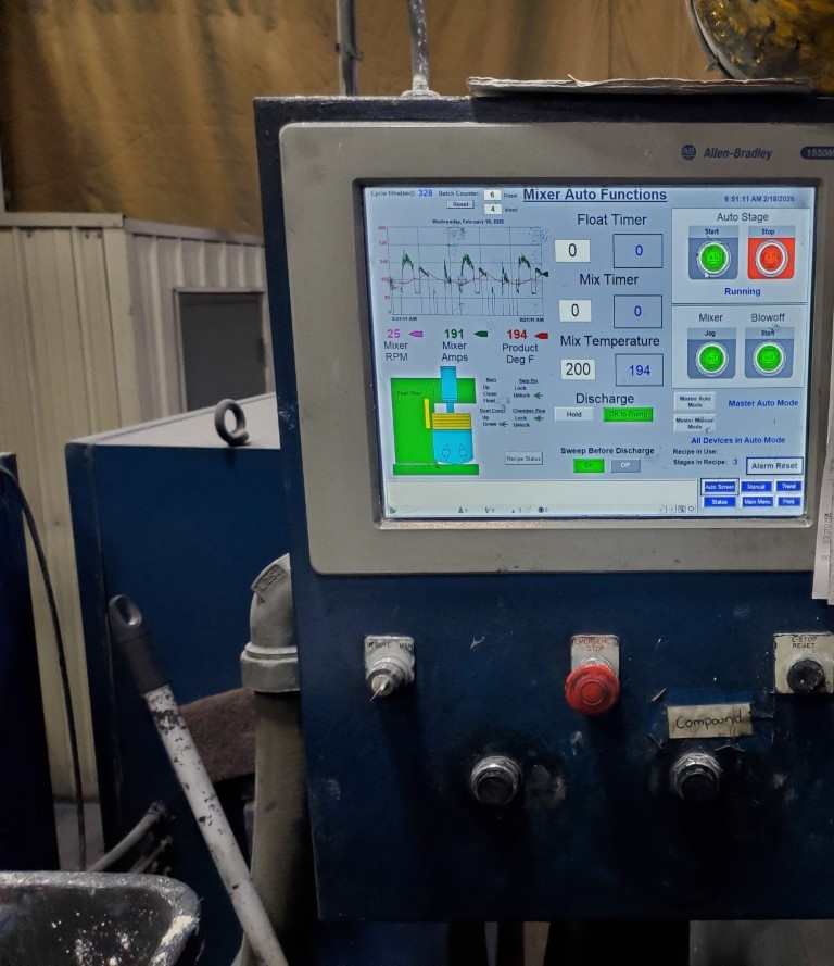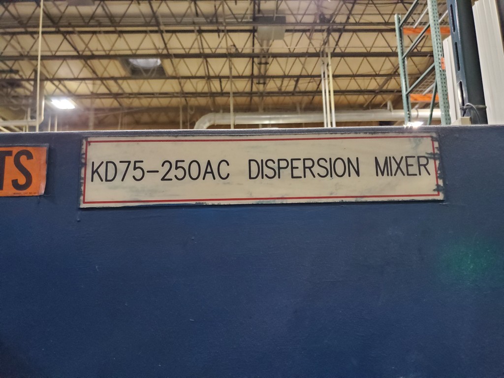 | One (1) Used Kneader 75 Liter Tilt Mixer, Rubber & Silicone Mixer, Model KD-75-250D, tilt discharge, 250 HP motor, AC VFD variable speed drive, heavy duty gearbox, 2-wing tangential rotor, dry-type mechanical seal dust stops, cooling jackets in chamber, rotors and floating weight, PLC with mixing data acquisition and full traceability, rear material feed, temperature monitoring, pneumatic hopper, unitized base | ||||