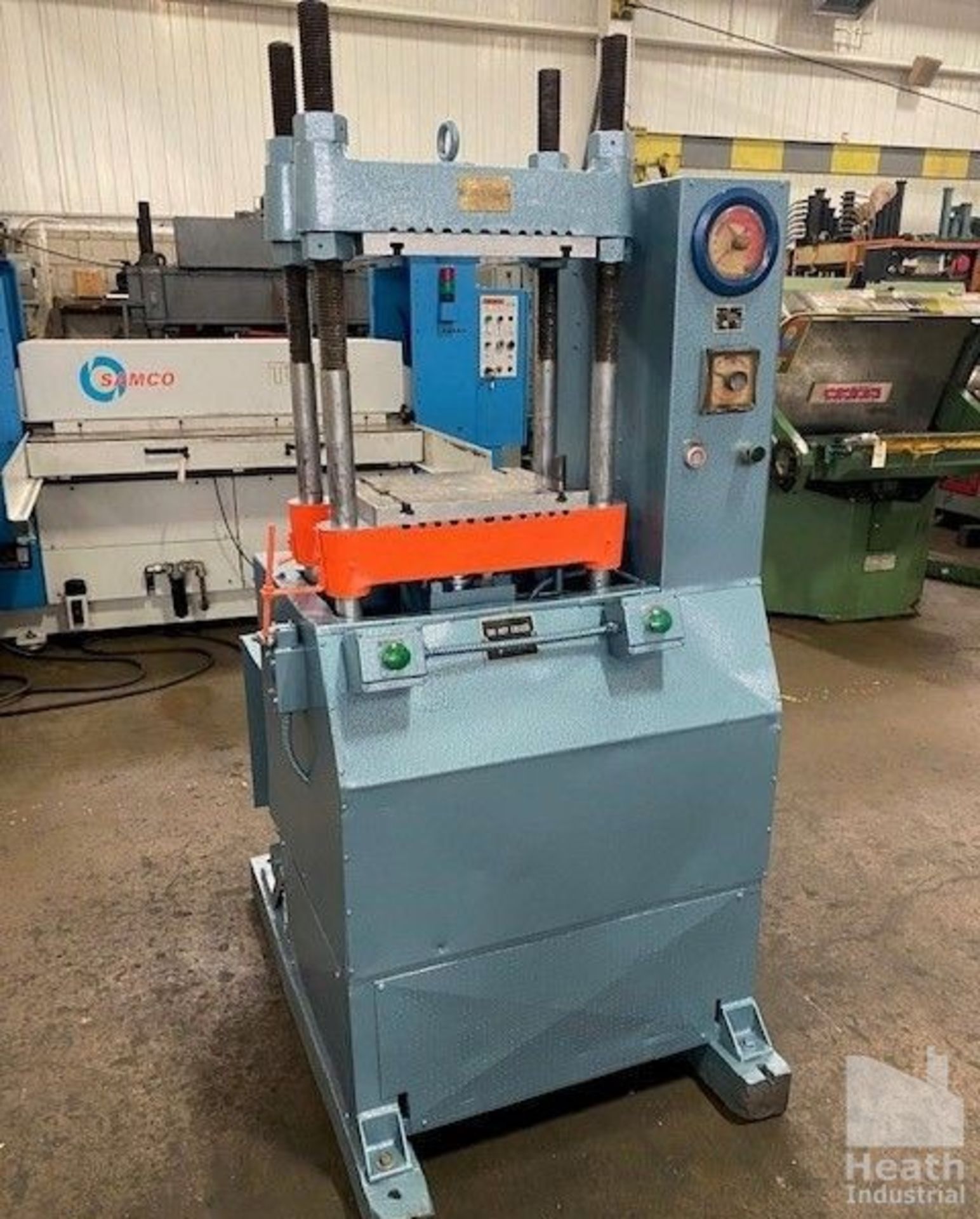 | Item 3038-1 – One (1) Used Wabash Lab Press, 15” x 12” mounting plates, 30 Ton, individual controls, adjustable daylight 12-22”, self contained hydraulic unit, 4-post type. Video Link: https://youtu.be/PK3nk3Vmtfs | ||||