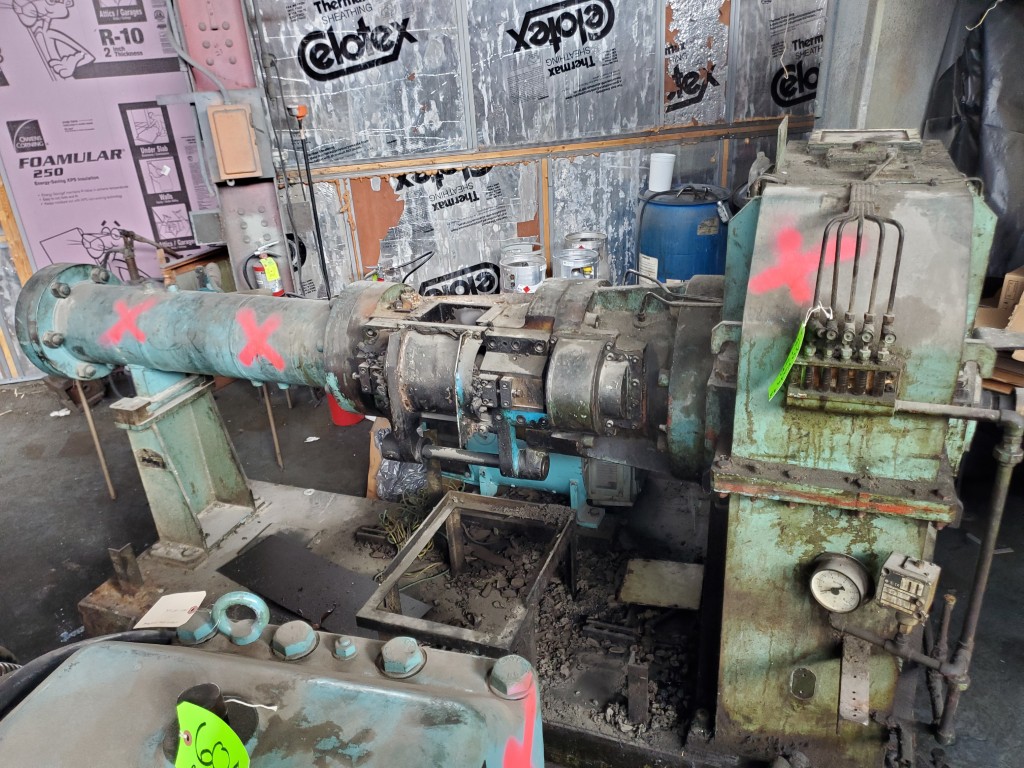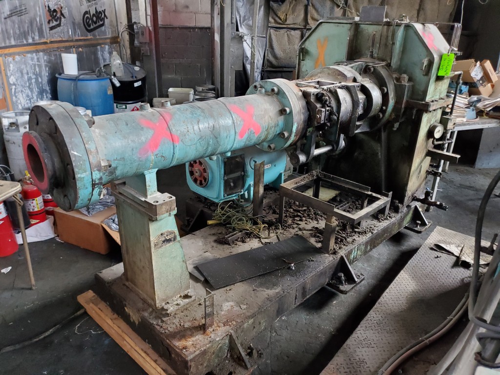 | Item 6076 - One (1) Used Nakata 4.5" 120mm Cold Feed Rubber Extruder, 12:1 L/D, 29.92:1 G/B ratio, GE 75 HP, 1150 RPM, 500 VDC motor, PFR power feed roll equipped with external bearings and adjustable scraper blade | ||||