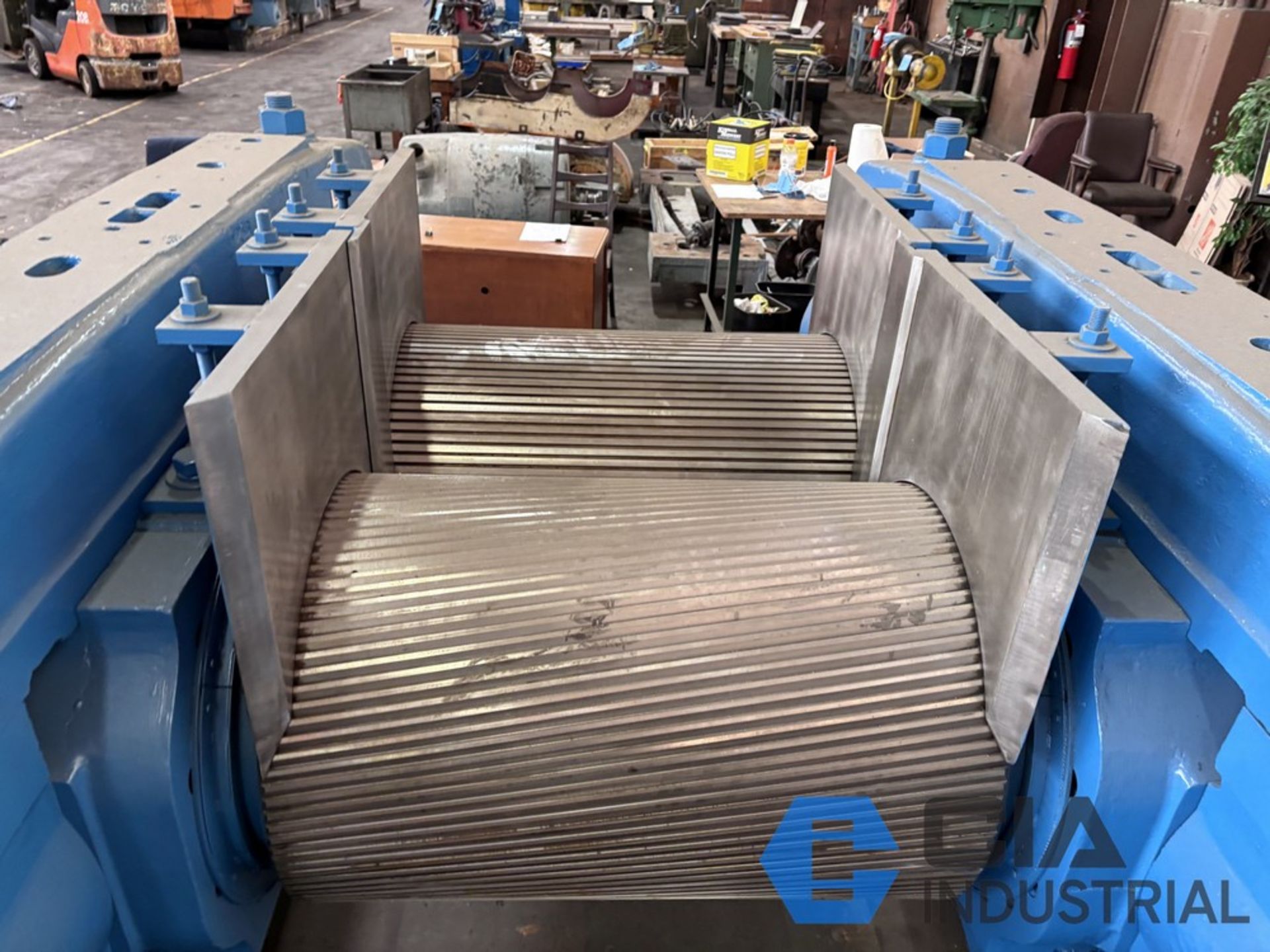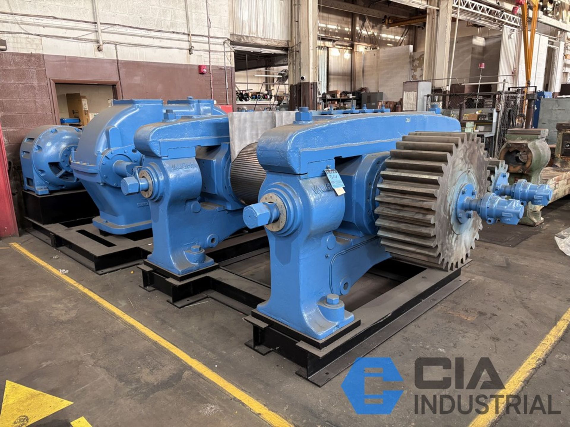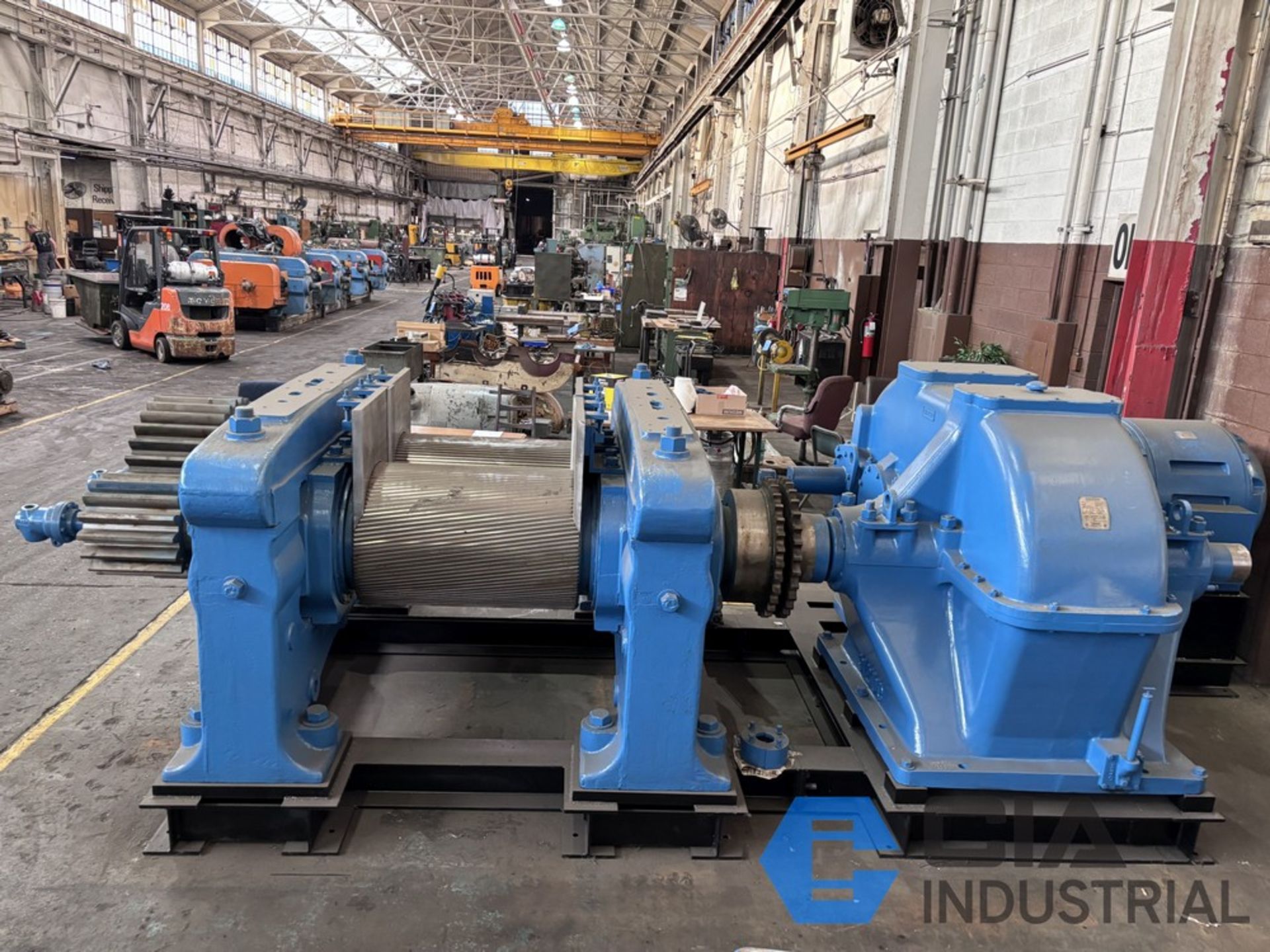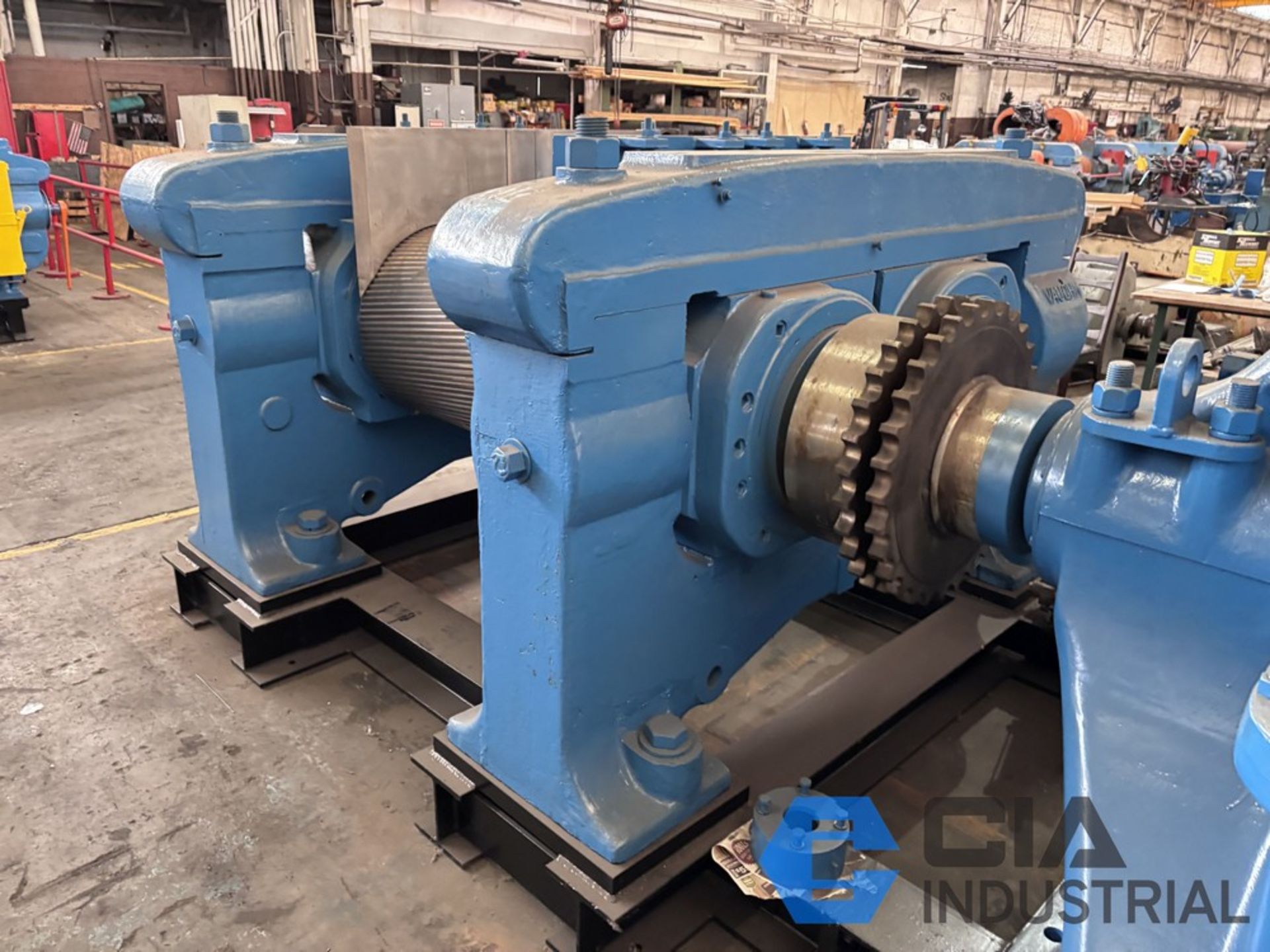 | Item 2159 - One (1) Vaughn 24" x 24” x 36”, 610mm x 915mm, 2-Roll Rubber Cracker Mill, Motor GE 250 HP 735 RPM 380 VAC, Gearbox Lufkin D912 28.72:1 reduction ratio direct drive gearbox, NEW rolls, NEW stock guides, NEW full circle bronze bushings, manual nip adjustment, top cap design, unitized base | ||||