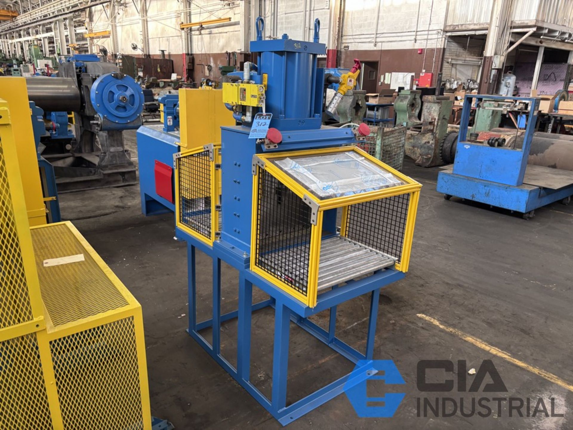 | Item 9064 - One (1) NEW / UNUSED RCM 18” Pneumatic Rubber Guillotine Bale Cutter, 18" blade width, 18” daylight under blade, mounted on free standing pedestal | ||||